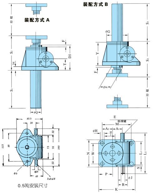 QWL蝸輪絲桿升降機是一種基礎起重部件,符合JB/T8809—1998(原JB/ZQ4391—86)標準。該產品可廣泛用于機械、冶金、建筑、化工、醫療、文化衛生等各個行業。承載能力2.5—120T。具有結構緊湊、體積小、重量輕、動力源廣泛、噪音小、安裝方便、使用靈活、功能多、配套形式多、可靠性高、使用壽命長等優點。具有提升、降落、推進、翻轉等功能,可以單臺或組合使用。QWL絲桿升降機能按一定程序準確地控制調整提升或推進的高度,可以用電動機或其它動力直接帶動,也可以手動。最高輸入轉速1500r/min,最大提升速度2.7m/min。有不同的結構型式和裝配方式,提升高度按用戶的要求制造。該裝置可以自鎖。